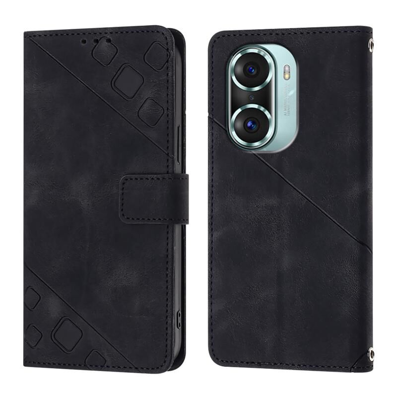 Θήκη τηλεφώνου από δέρμα με ανάγλυφη υφή για Honor 60 Pro (Ανοιχτό Μωβ)