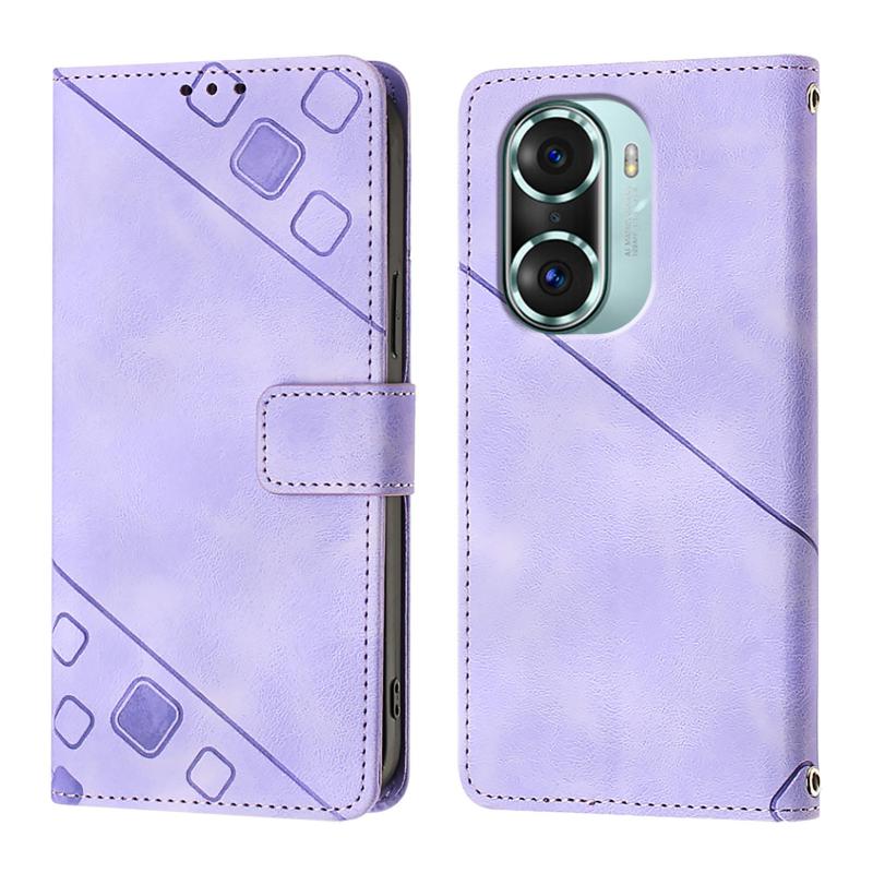 For Honor 60 Pro Skin-feel Embossed Leather Phone Case(Light Purple)