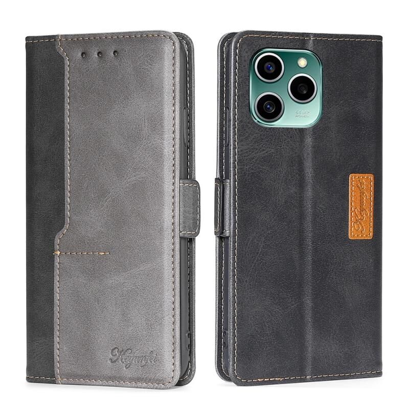 Για Honor 60 SE αντίθεση χρώμα πλευρά πόρπη δερμάτινη θήκη τηλεφώνου υπόθεση (μαύρο + γκρι)