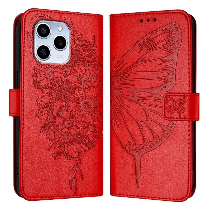 Για Honor 60 SE ανάγλυφη πεταλούδα δερμάτινη θήκη τηλεφώνου (κόκκινο)