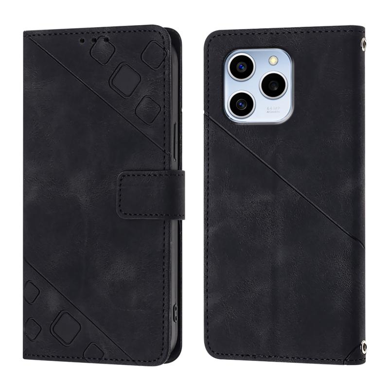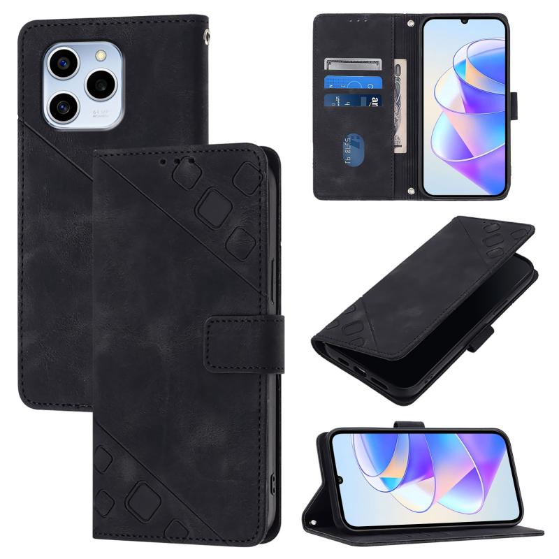 For Honor 60 SE Skin-feel Embossed Leather Phone Case(Black)