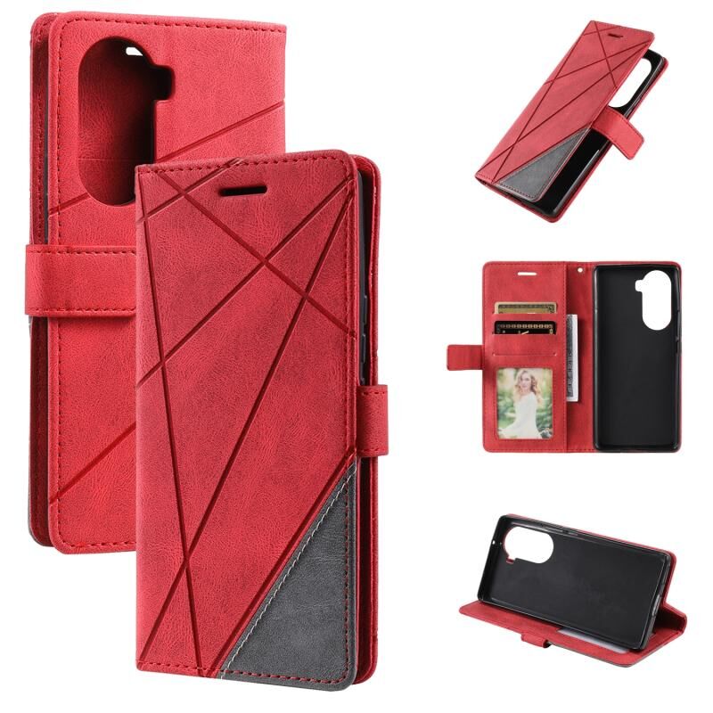 Για Honor 60 δέρμα αίσθηση δέρματος Splicing δέρμα τηλέφωνο υπόθεση (κόκκινο)