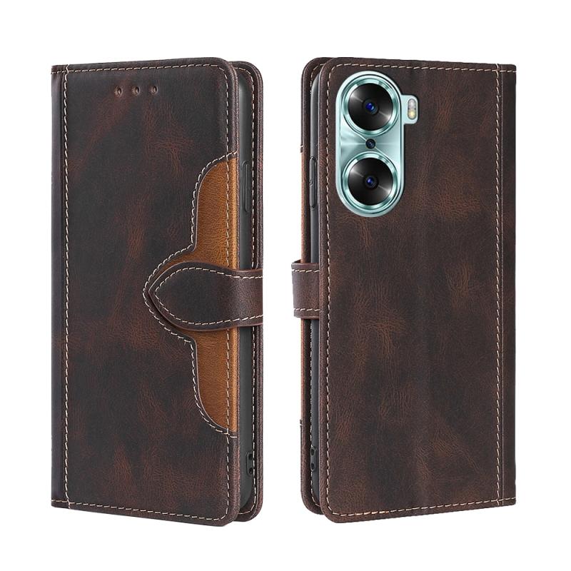 Θήκη τηλεφώνου από δέρμα με μαγνητικό κούμπωμα και αίσθηση καλαθιού για Honor 60 (Καφέ)