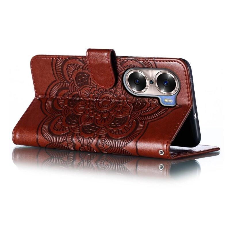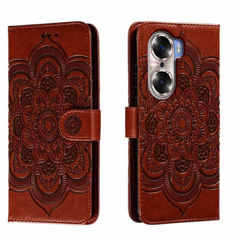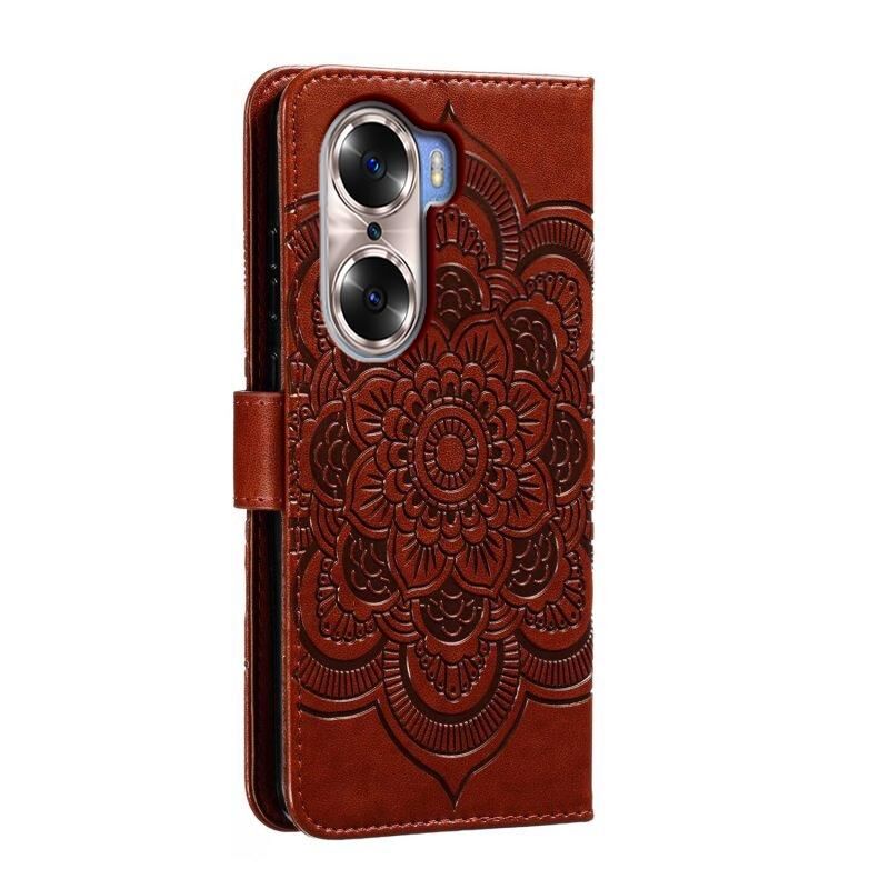 Για Honor 60 Sun Mandala ανάγλυφο μοτίβο τηλέφωνο δερμάτινη θήκη (καφέ)