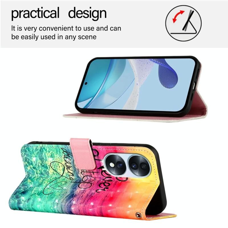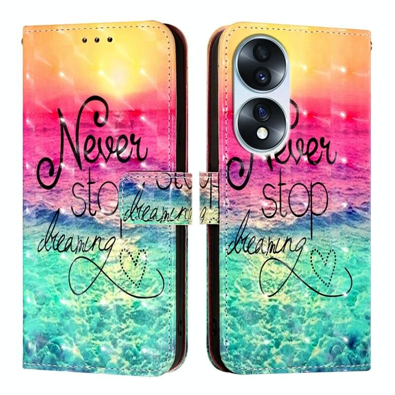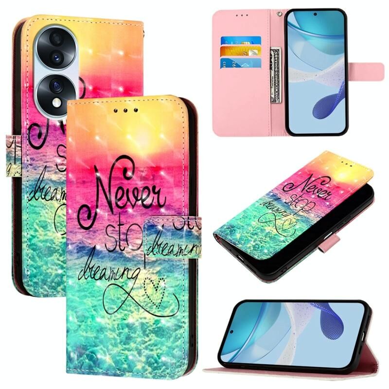 Θήκη τηλεφώνου από δέρμα με οριζόντια αναδίπλωση και τρισδιάστατη ζωγραφική για Honor 70 (Κυνηγώντας Όνειρα)