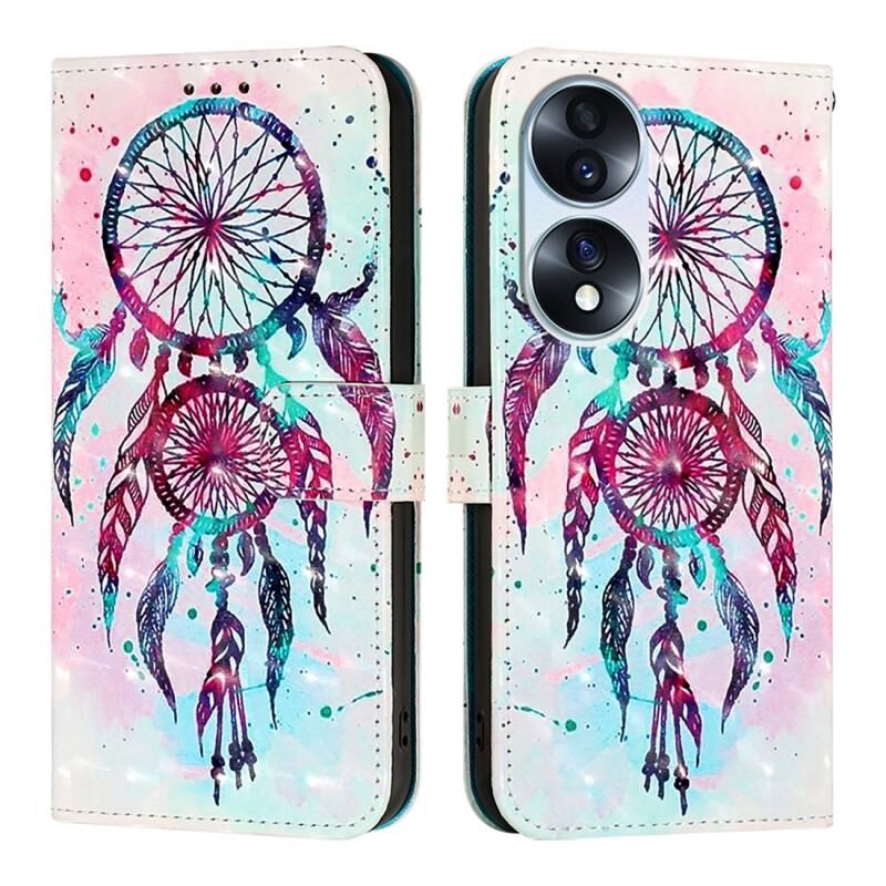 Θήκη τηλεφώνου από δέρμα με τρισδιάστατη ζωγραφική και οριζόντια αναδίπλωση για Honor 70 (Χρώμα: Πτώση Αερόφωνων)