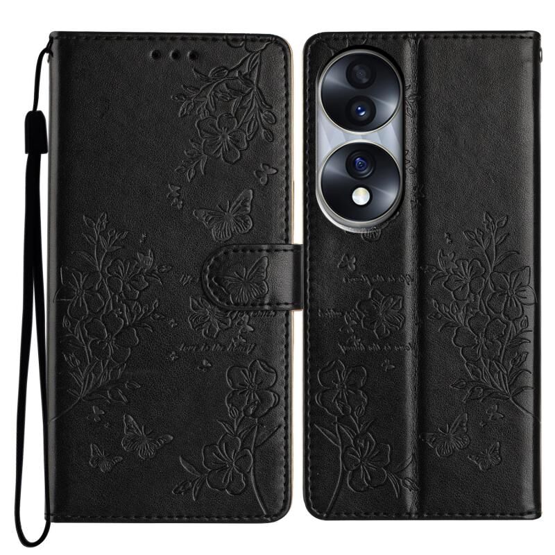 Θήκη τηλεφώνου από δέρμα για Honor 70 5G, με σχέδια πεταλούδες και λουλούδια (Χρυσό)