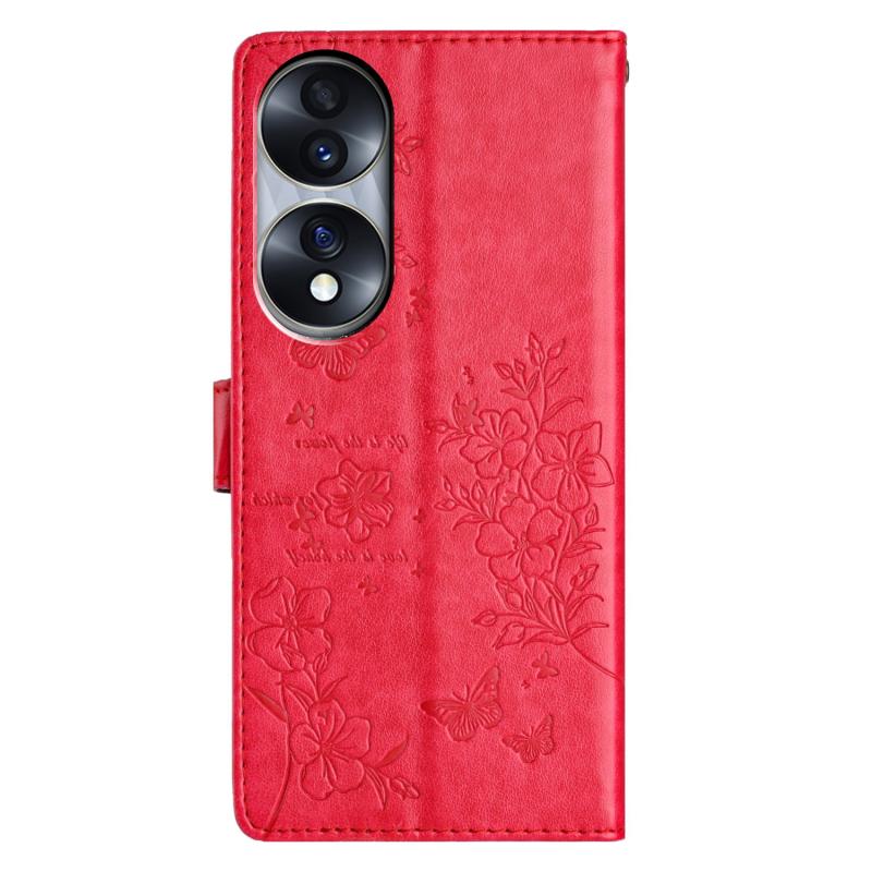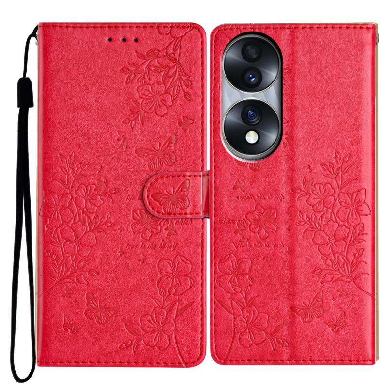 For Honor 70 5G Butterflies And Flowers Leather Phone Case(Red)