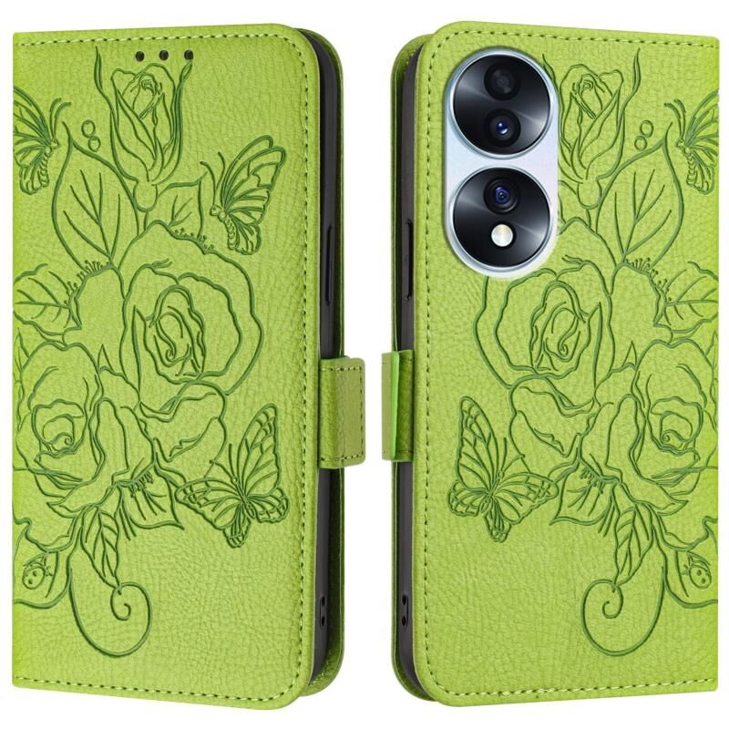 For Honor 70 5G Embossed Rose RFID Anti-theft Leather Phone Case(Green)