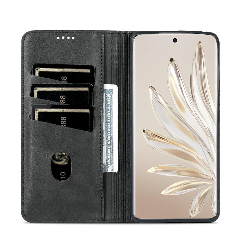Για Honor 70 AZNS Μαγνητικό μοσχάρι υφή Flip δέρμα τηλέφωνο υπόθεση (μαύρο) (AZNS)