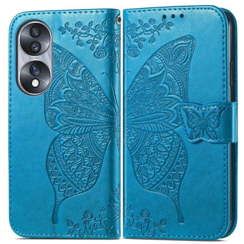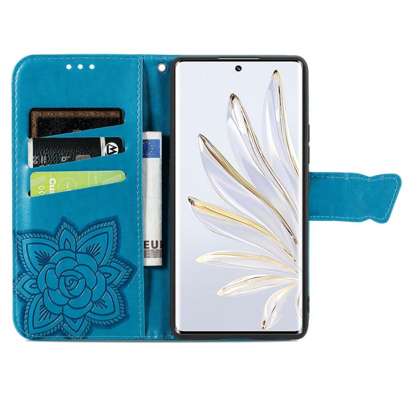 For Honor 70 Butterfly Love Flower Embossed Horizontal Flip Leather Phone Case(Blue)