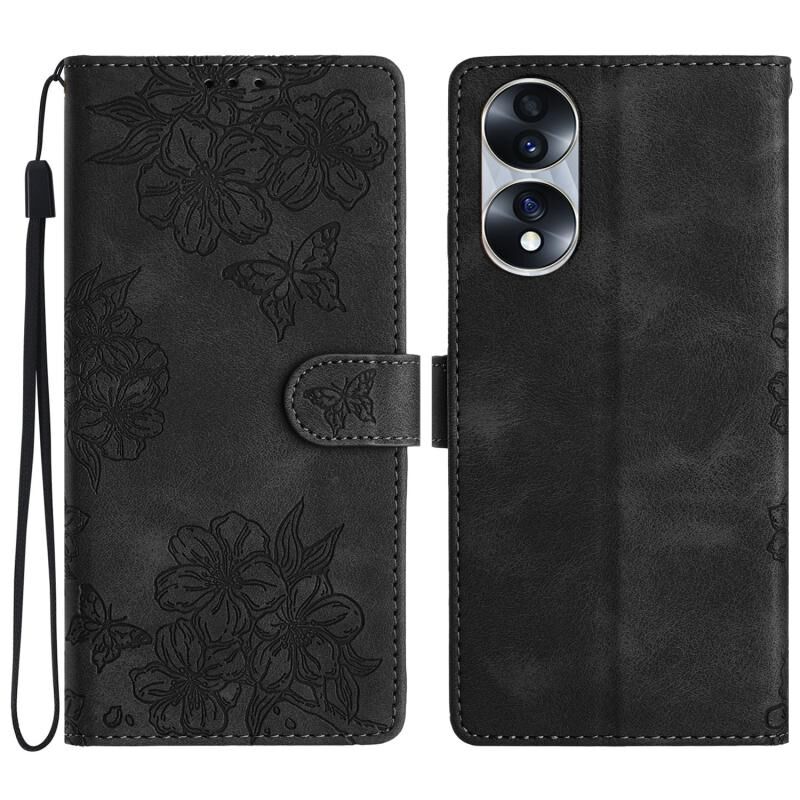 Θήκη τηλεφώνου Honor 70 Cherry Blossom Butterfly Skin Feel Embossed PU (Κόκκινη)