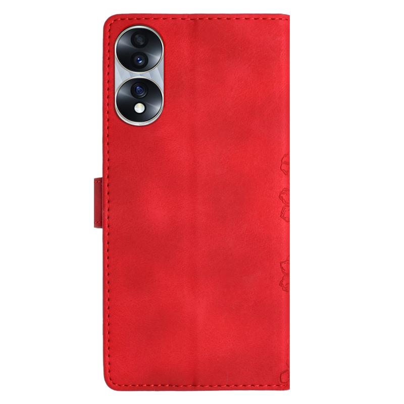 For Honor 70 Cherry Blossom Butterfly Skin Feel Embossed PU Phone Case(Red)