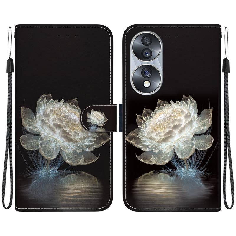 Θήκη τηλεφώνου από δέρμα με πολύχρωμη σχεδίαση και κρυσταλλική υφή για Honor 70 (Κρυσταλλική Παιώνια)