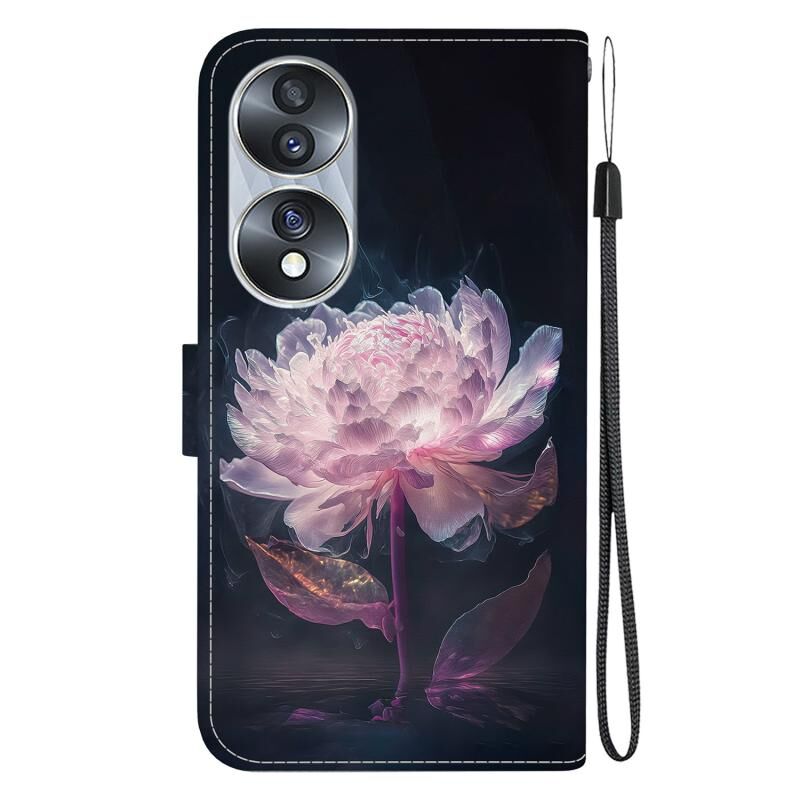Θήκη τηλεφώνου από δέρμα με πολύχρωμη σχεδίαση και κρυσταλλική υφή για Honor 70 (Μωβ Παιώνια)