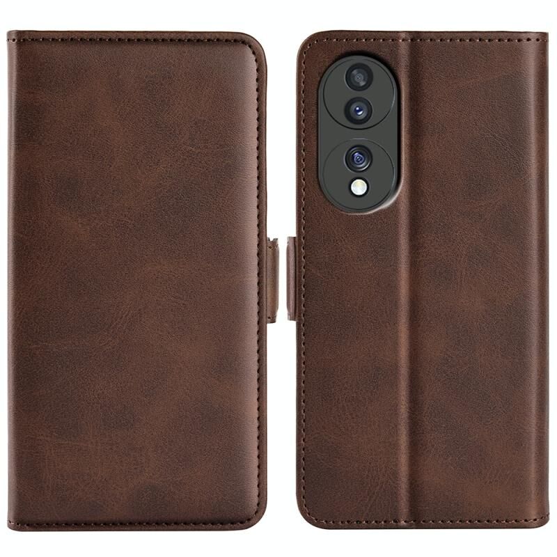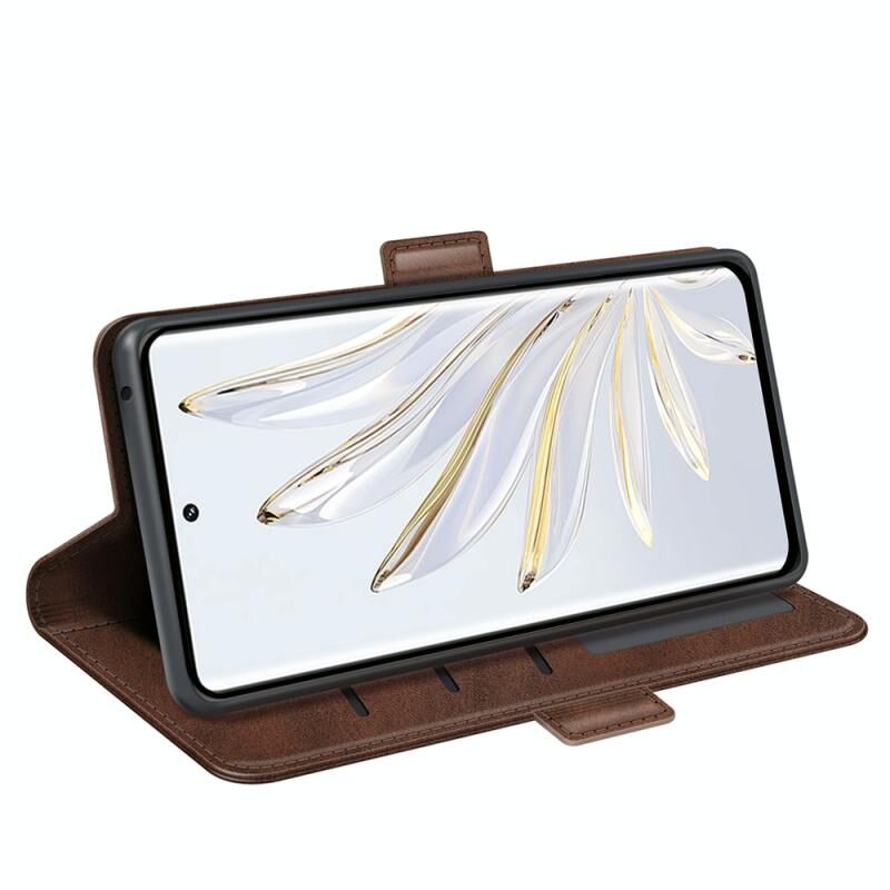 Για Honor 70 Διπλής όψης μαγνητική πόρπη Flip δέρμα τηλέφωνο υπόθεση (Καφέ)