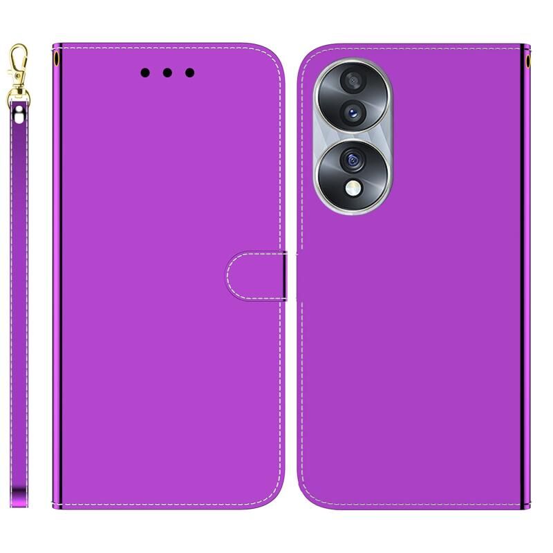 Θήκη τηλεφώνου από δέρμα με οριζόντιο άνοιγμα, με απομίμηση καθρεπτικής επιφάνειας για Honor 70 (Μωβ)