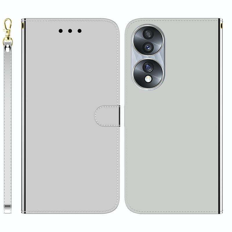 Θήκη τηλεφώνου από δέρμα με οριζόντιο άνοιγμα, με απομίμηση καθρεπτικής επιφάνειας για Honor 70 (Ασημί)