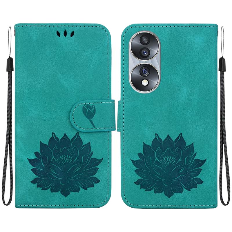 For Honor 70 Lotus Embossed Leather Phone Case(Green)