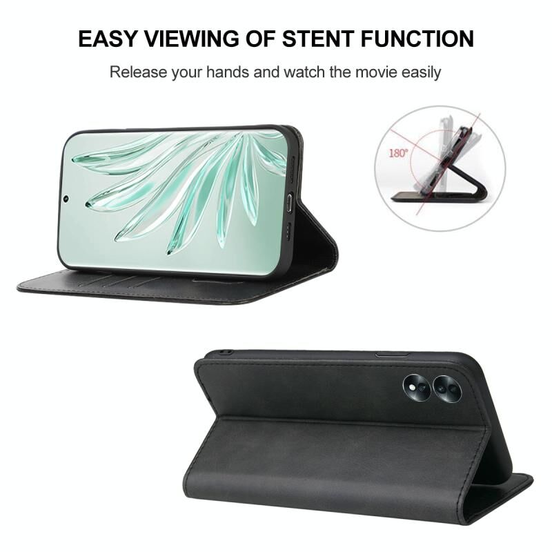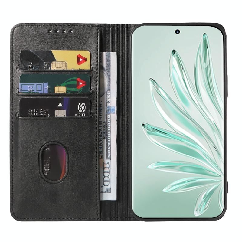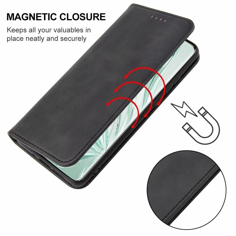 Για Honor 70 Μαγνητικό κλείσιμο δερμάτινη θήκη τηλεφώνου (Μαύρο)