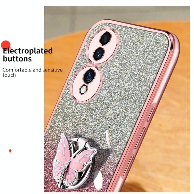 Θήκη κινητού τηλεφώνου TPU για Honor 70 με επιμετάλλωση, διαβαθμισμένη λάμψη, σχέδιο πεταλούδας (Ροζ)