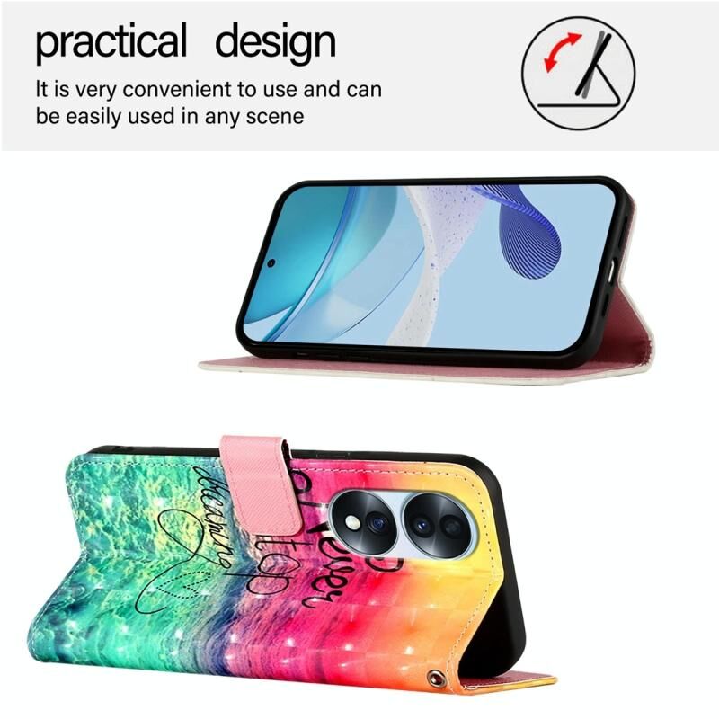 Θήκη τηλεφώνου από δέρμα με οριζόντιο άνοιγμα και τρισδιάστατη ζωγραφική για Honor 70 Pro (Κυνηγώντας Όνειρα)