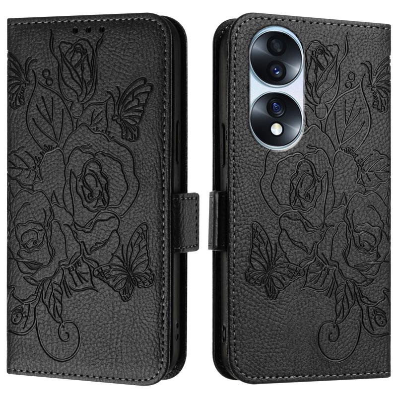 For Honor 70 Pro 5G Embossed Rose RFID Anti-theft Leather Phone Case(Black)