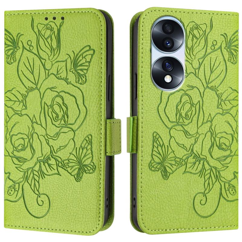 For Honor 70 Pro 5G Embossed Rose RFID Anti-theft Leather Phone Case(Green)