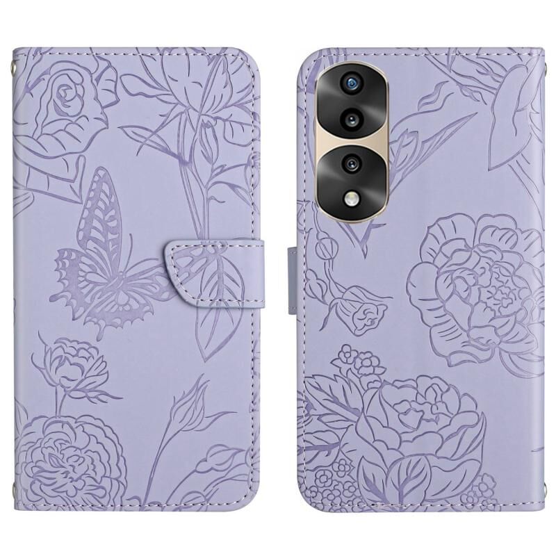 Για Honor 70 Pro/70 Pro + HT03 δέρμα αίσθηση πεταλούδα ανάγλυφο Flip υπόθεση τηλεφώνου δέρμα (μωβ)