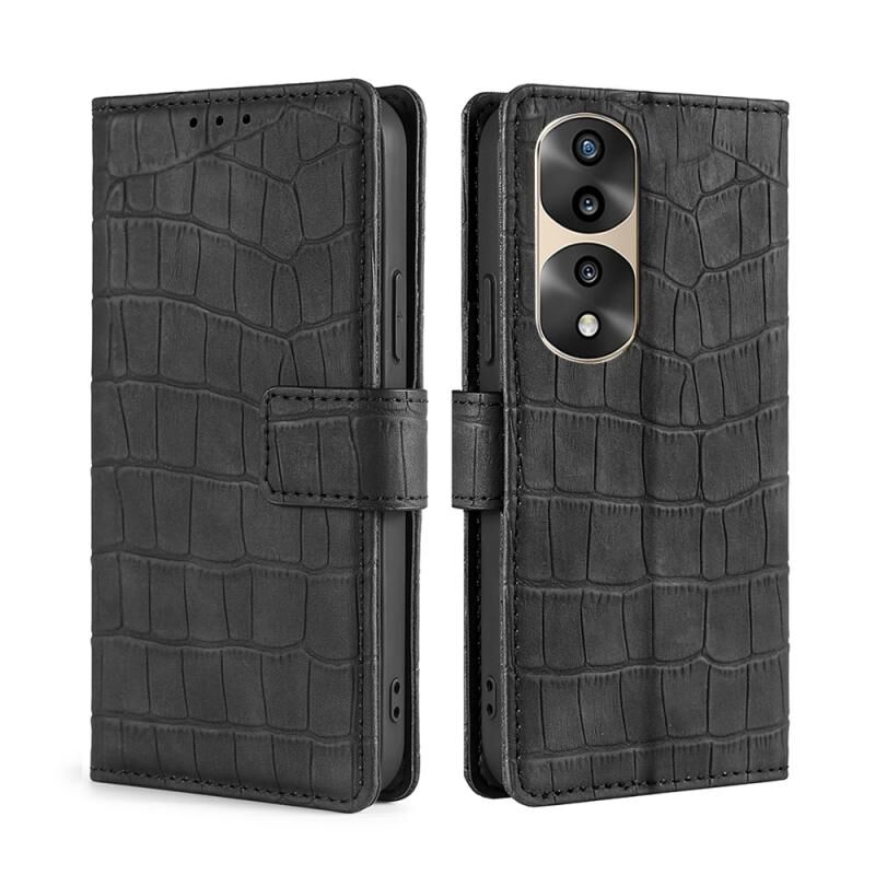 Θήκη τηλεφώνου από δέρμα με μαγνητικό κούμπωμα και υφή κροκόδειλου για Honor 70 Pro/70 Pro+ (Μαύρο)