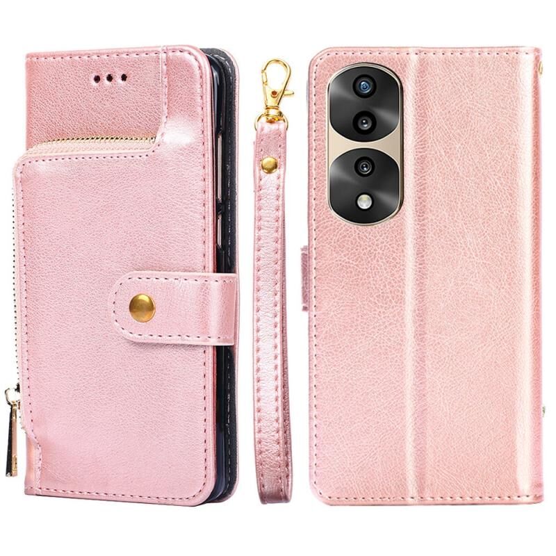 Για Honor 70 Pro/70 Pro + φερμουάρ τσάντα PU + TPU οριζόντια Flip δέρμα τηλέφωνο υπόθεση (Ροζ χρυσός)