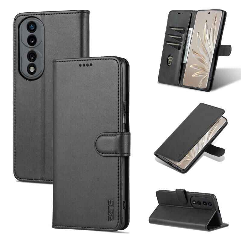 Για την Honor 70 Pro AZNS δέρμα αίσθηση μοσχάρι υφή Flip υπόθεση τηλεφώνου δέρμα (μαύρο)