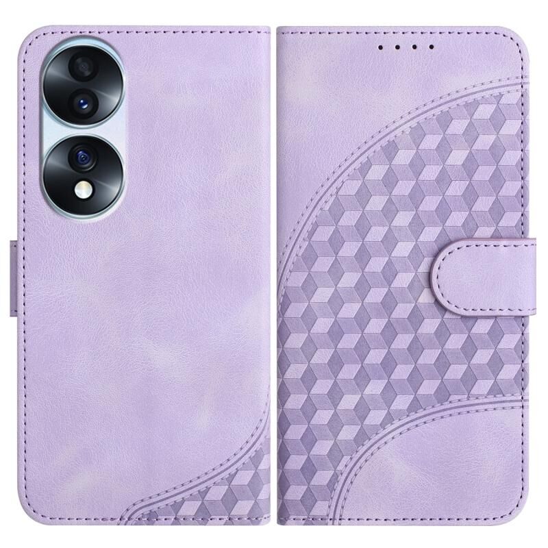 Θήκη τηλεφώνου από δέρμα με ανάγλυφο σχέδιο κεφαλής ελέφαντα για Honor 70 Pro με κορδόνι (Ανοιχτό Μωβ)