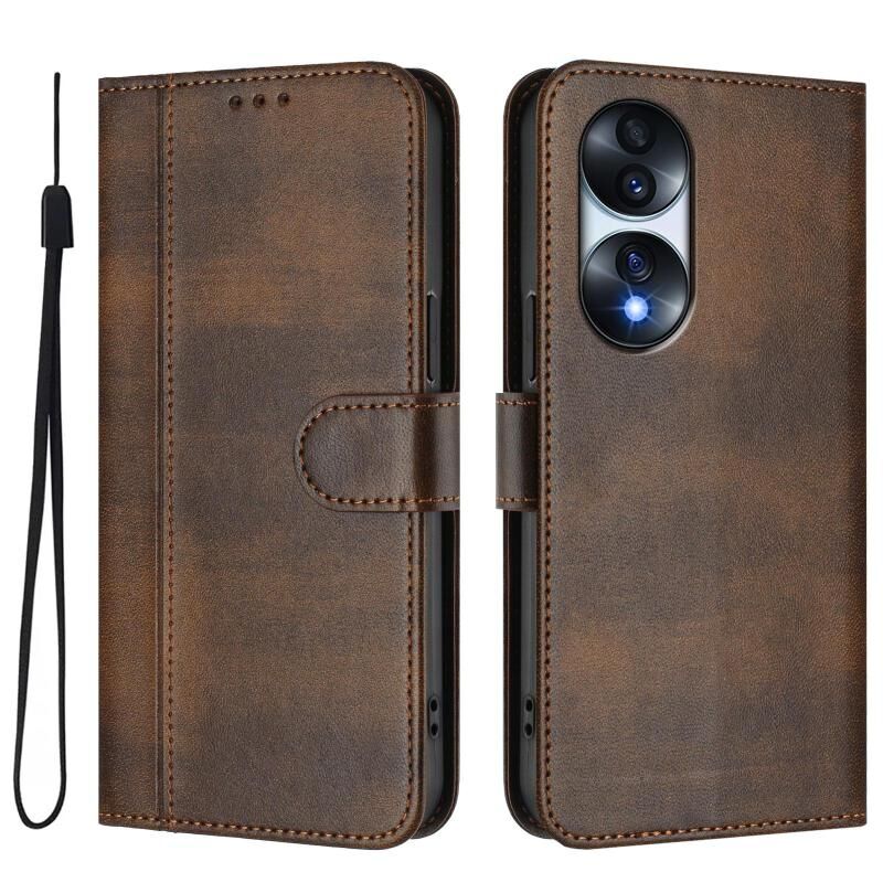 Θήκη τηλεφώνου από δέρμα retro με αγκράφα και ραφές για Honor 70 Pro Line (Μέντας Πράσινο)