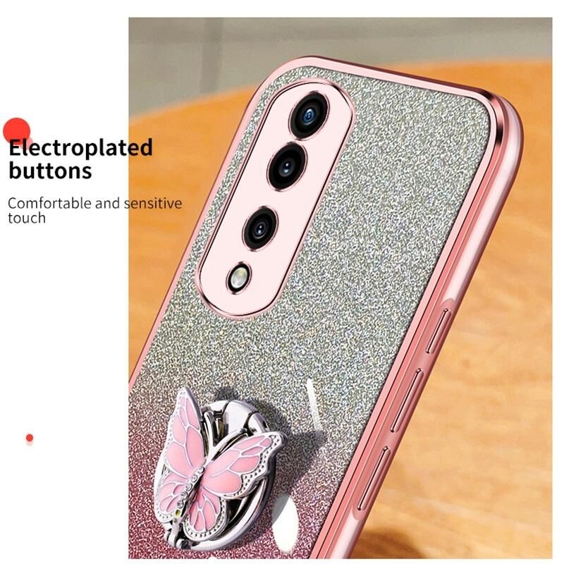 Θήκη κινητού τηλεφώνου TPU για Honor 70 Pro με επιμετάλλωση, διαβαθμισμένη λάμψη, σχέδιο πεταλούδας (Ροζ)