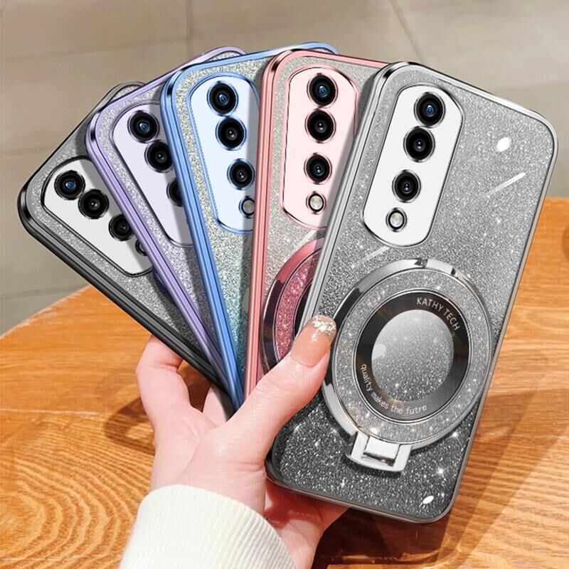 Για Honor 70 Pro επιμεταλλωμένο βαθμιδωτή Glitter στρογγυλή κάτοχος TPU τηλέφωνο υπόθεση (Ασημί)