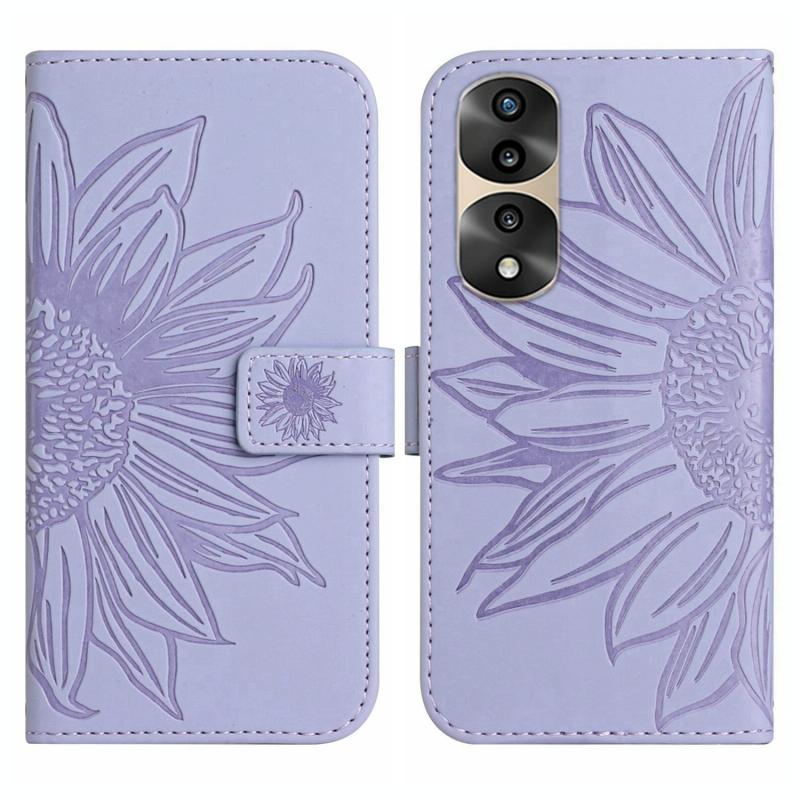 Θήκη τηλεφώνου από δέρμα με σχέδιο ηλίανθου και αίσθηση δέρματος για Honor 70 Pro+, με κορδόνι (Κίτρινο)