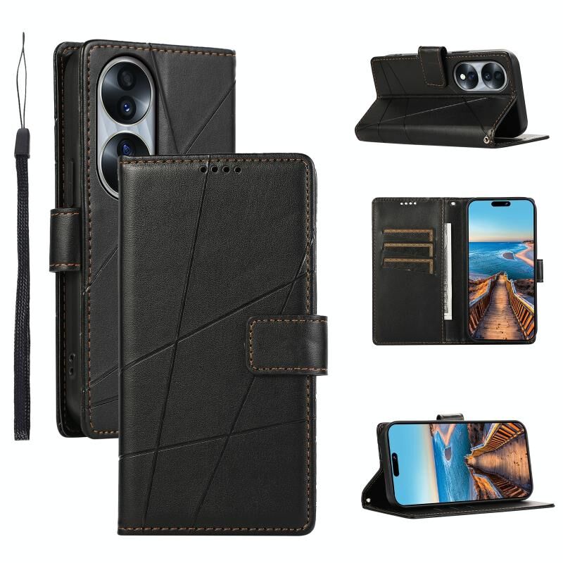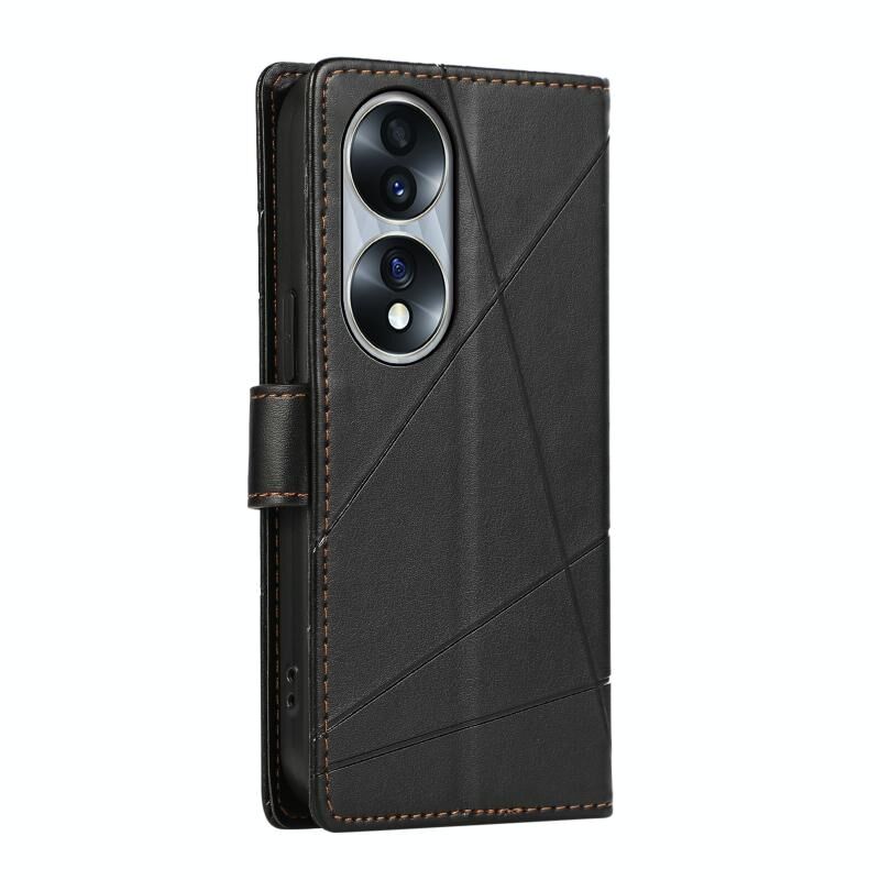 Θήκη τηλεφώνου με ανάγλυφη υφή γνήσιου δέρματος για Honor 70 PU (Μαύρο)
