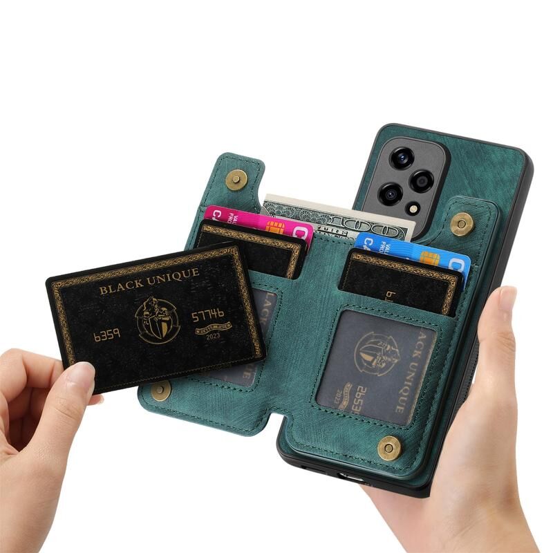 2. Wallet Function: The leather case is equipped with card slots for placing cards and a small amount of cash.