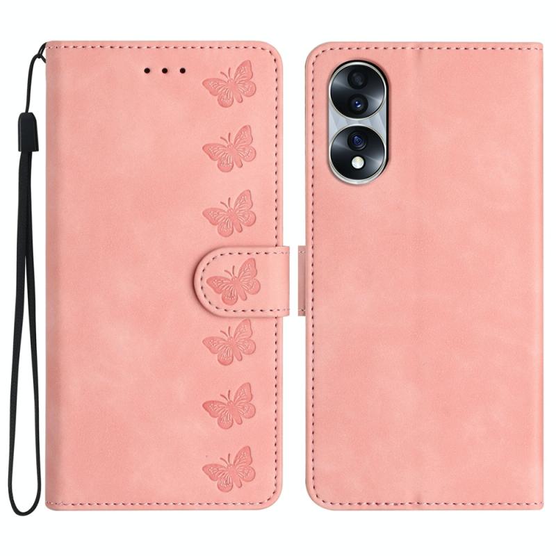 Θήκη τηλεφώνου Honor 70 Seven Butterflies Embossed Leather (ρόζ)