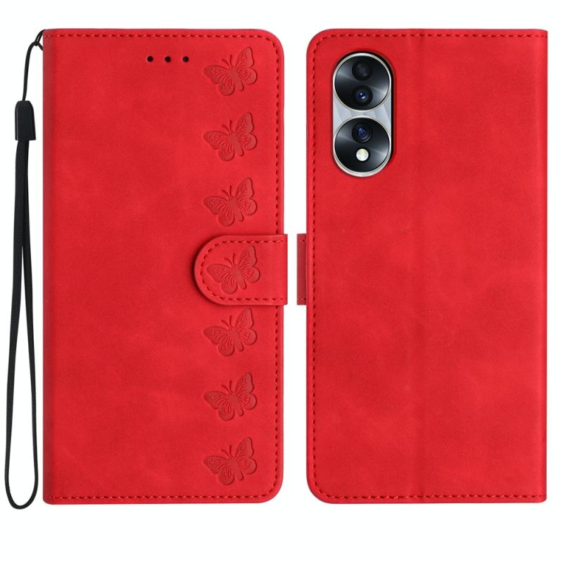 Θήκη τηλεφώνου Honor 70 Seven Butterflies Embossed Leather (Κόκκινο)