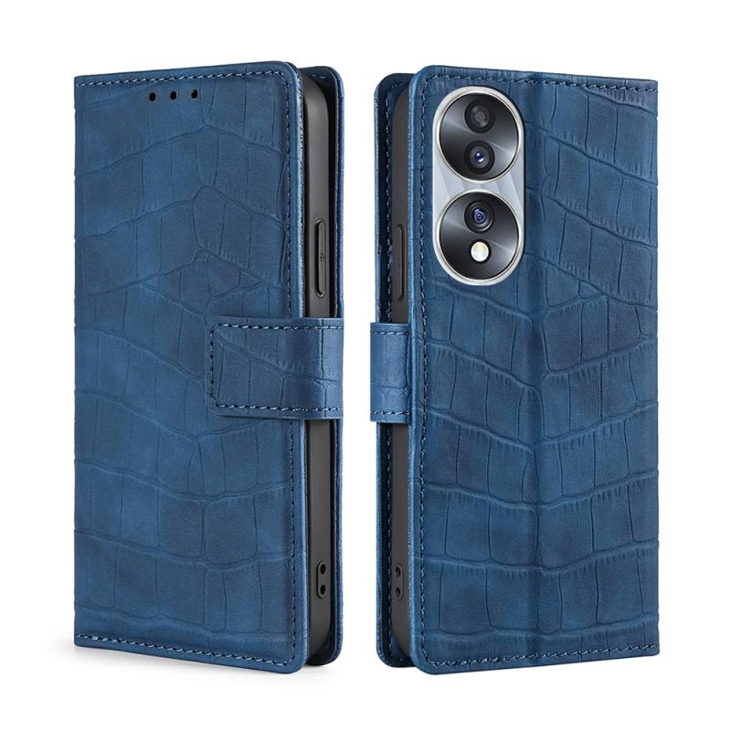 For Honor 70 Skin Feel Crocodile Magnetic Clasp Leather Phone Case(Blue)