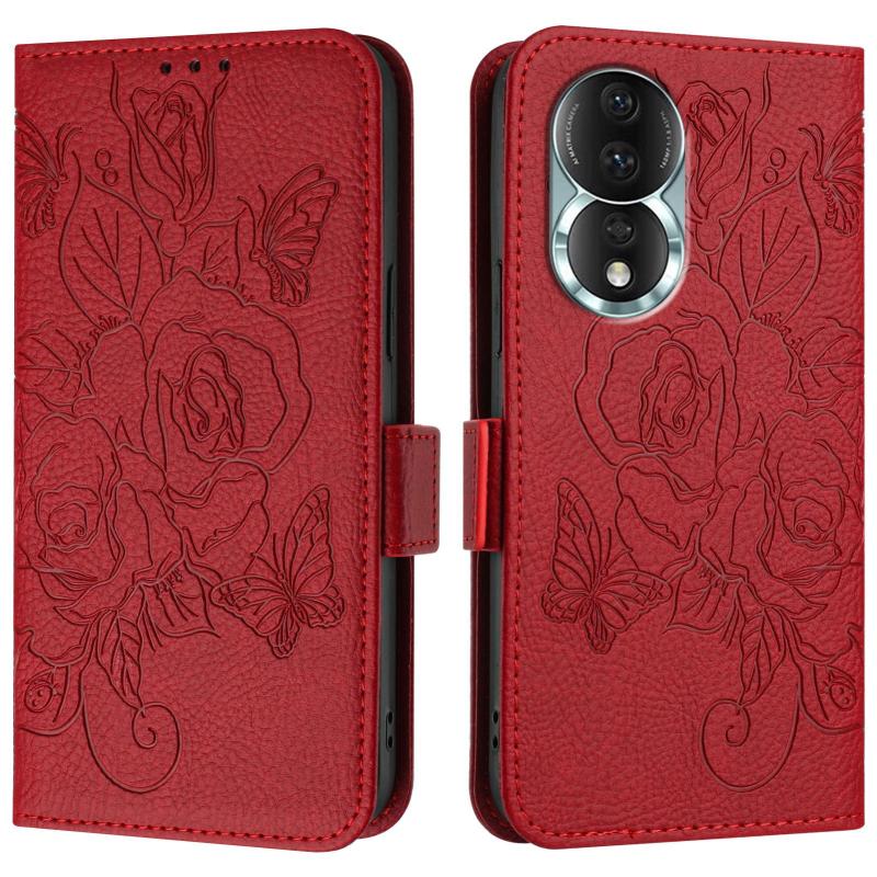 For Honor 80 5G Embossed Rose RFID Anti-theft Leather Phone Case(Red)