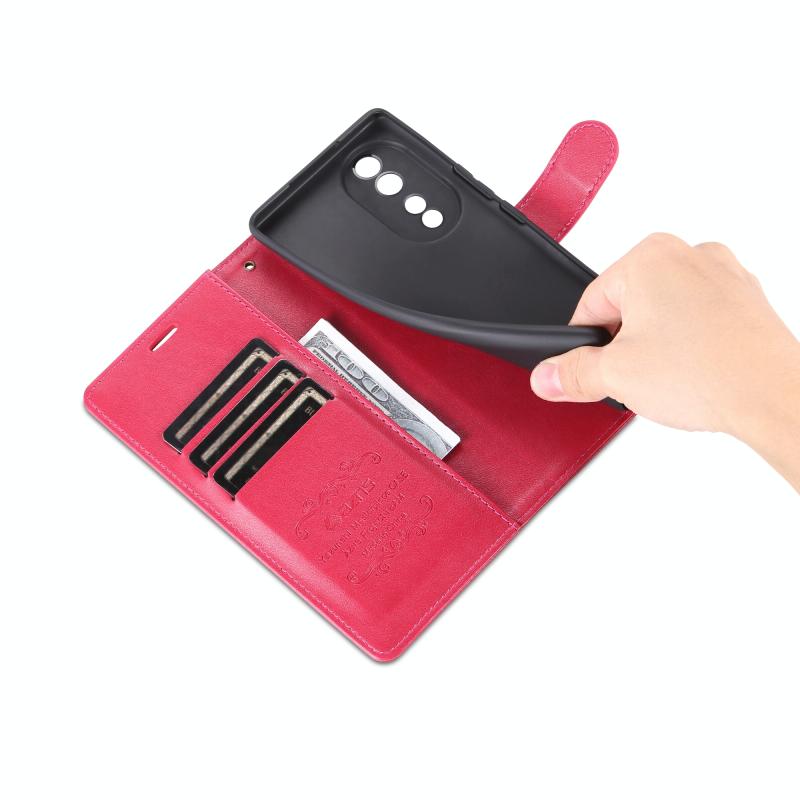 Θήκη τηλεφώνου δερμάτινη με υφή δέρματος προβάτου για Honor 80 AZNS (Μαύρο) (Κόκκινο)