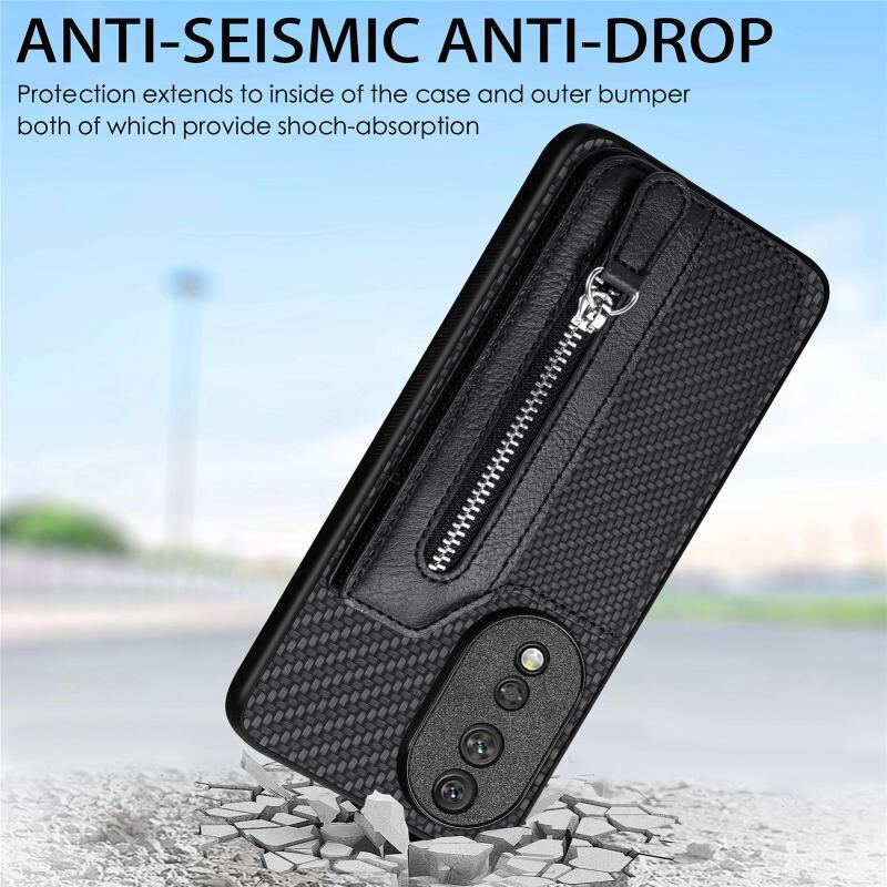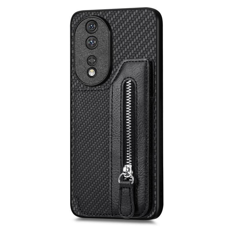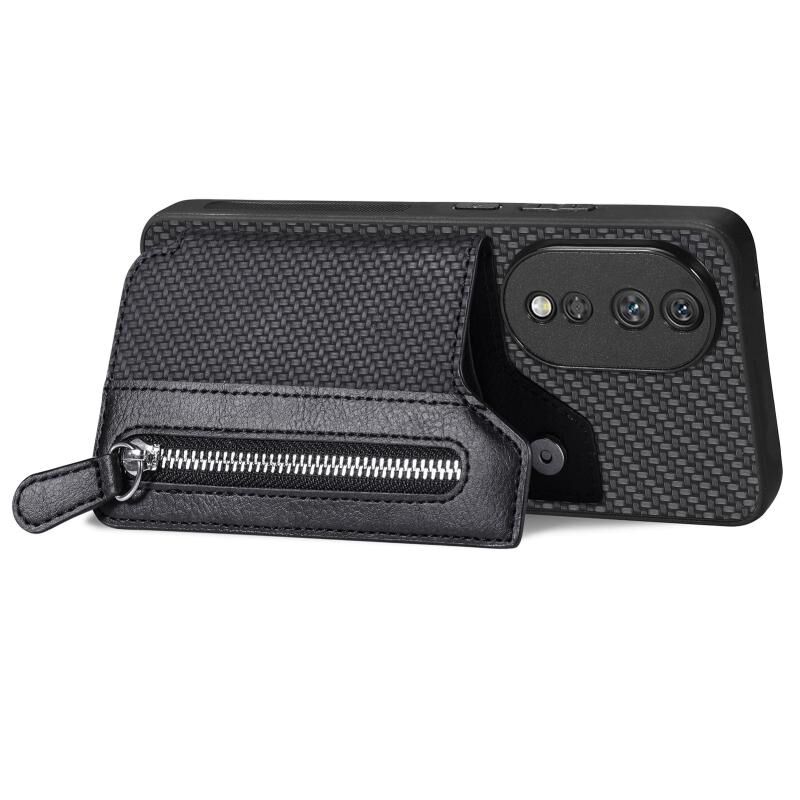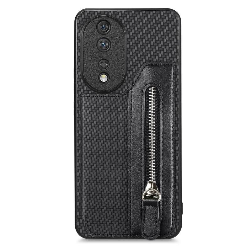 Για Honor 80 Ανθρακονήματα οριζόντια Flip φερμουάρ πορτοφόλι υπόθεση τηλέφωνο (Μαύρο)