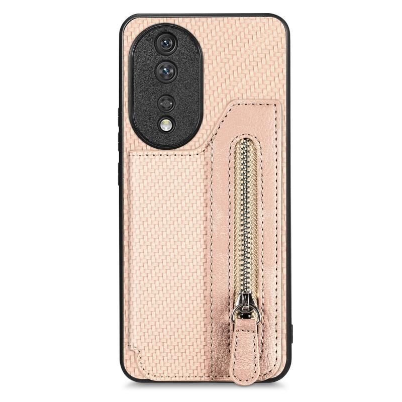 Για Honor 80 Ανθρακονήματα οριζόντια Flip φερμουάρ πορτοφόλι υπόθεση τηλέφωνο (χακί)