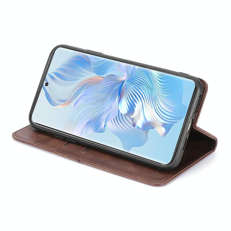 Θήκη τηλεφώνου δερμάτινη, μαγνητική, οριζόντια αναδιπλούμενη για Honor 80 με υφή αγελάδας (Μαύρο)