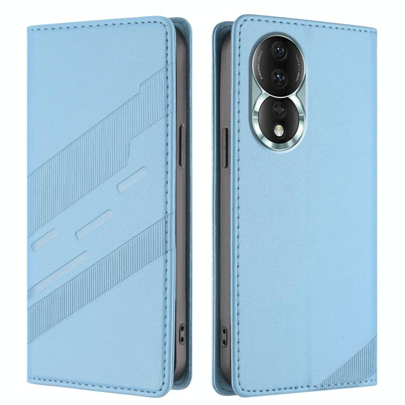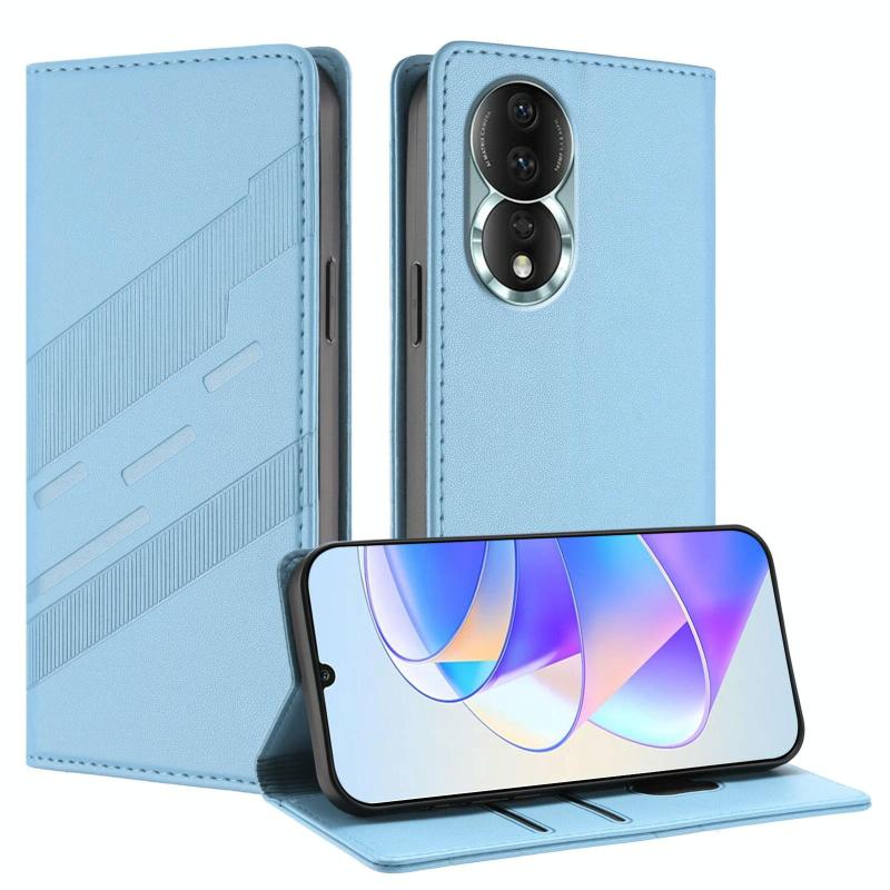 For Honor 80 Embossed Multi-functional Wallet Retro Leather Phone Case(Light Blue)