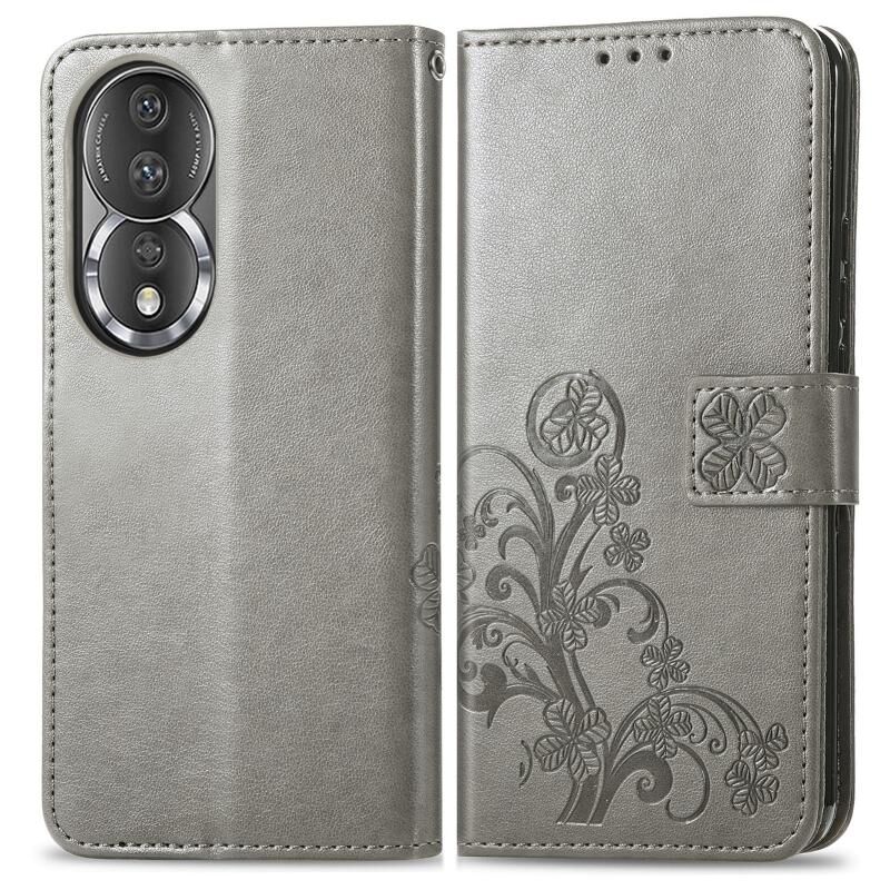 Θήκη τηλεφώνου από δέρμα με ανάγλυφο τετραφύλλι για Honor 80 (Γκρι)