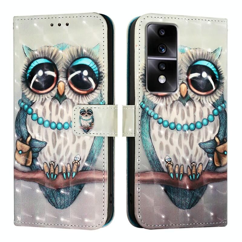 Θήκη τηλεφώνου από δέρμα με οριζόντια αναδίπλωση και τρισδιάστατη βαφή για Honor 80 GT (Γκρι κουκουβάγια)